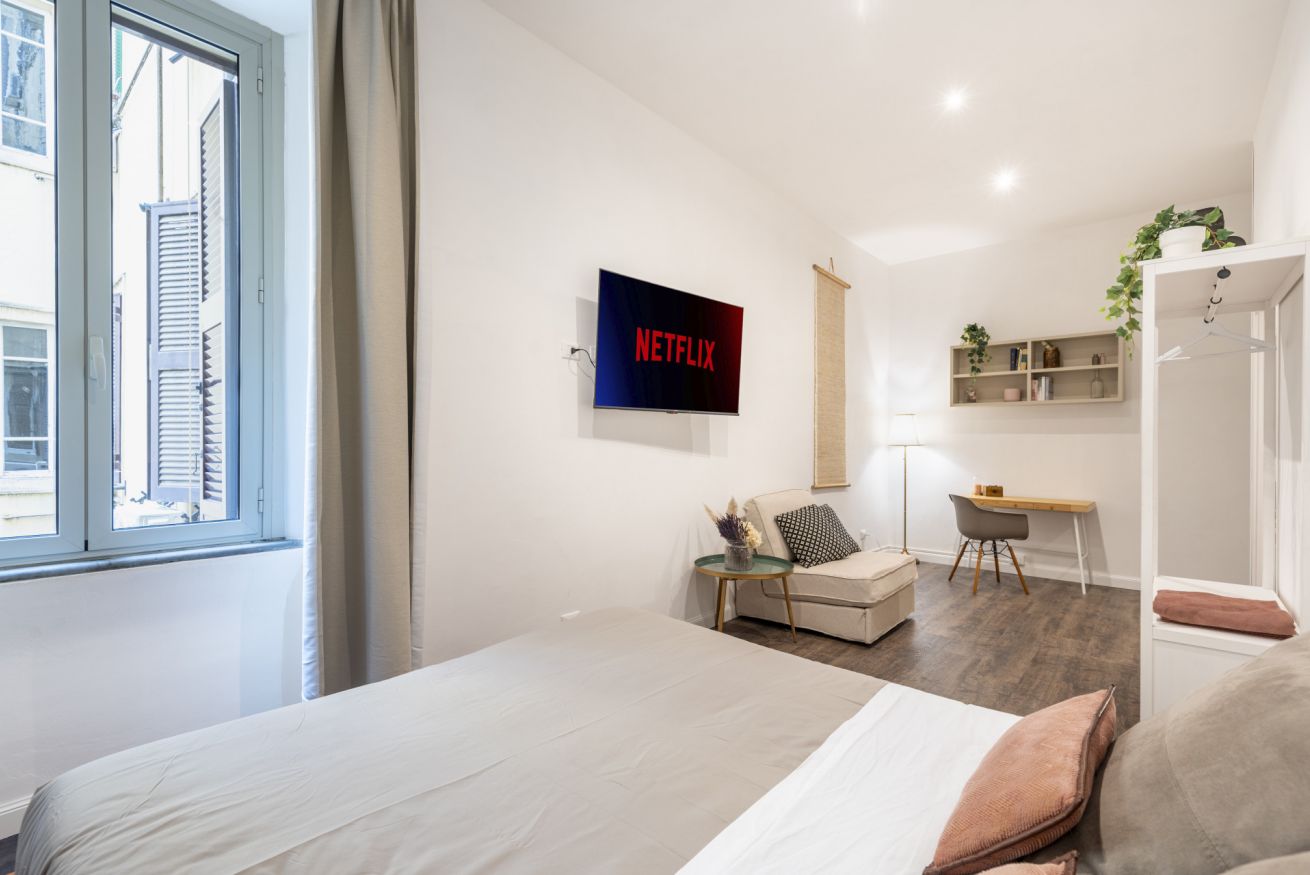 Benvenuti nella nostra esclusiva camera Deluxe al centro di Roma, pensata per i viaggiatori più esigenti. Questo rifugio di benessere di 28 metri quadrati offre un’oasi di comfort e stile, perfetta per il tuo soggiorno nella città eterna.