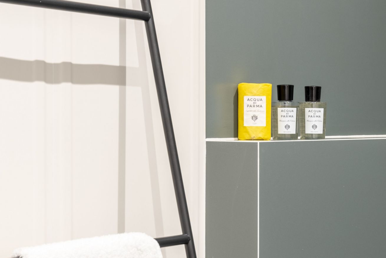 La TIBERIA include un letto matrimoniale, aria condizionata, scrivania da lavoro, cassaforte* , Wi-Fi, TV Smart, caffe e thè per tutta la durata del soggiorno e possibilita’ di aggiunta di una culla. Il bagno privato, con asciugamani, asciugacapelli e prodotti di cortesia di alta qualità, garantisce un’esperienza di massimo relax e privacy.